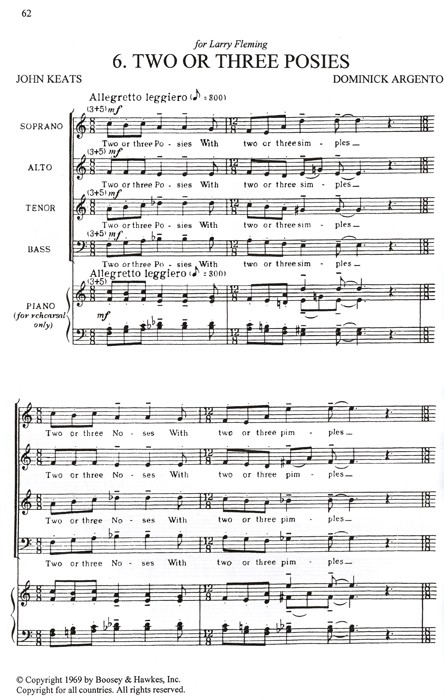 A set of seven choral pieces for unaccompanied mixed voices (SATB) based on whimsical doggerel verses by John Keats. Published as separate movements in 1969, this work is now available as a complete set.