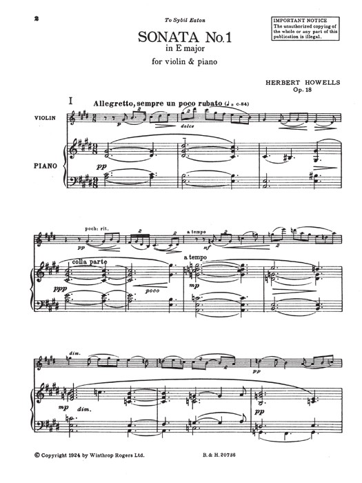 Howells, Herbert - Sonata No. 1 Op. 18 (Violin, Piano)