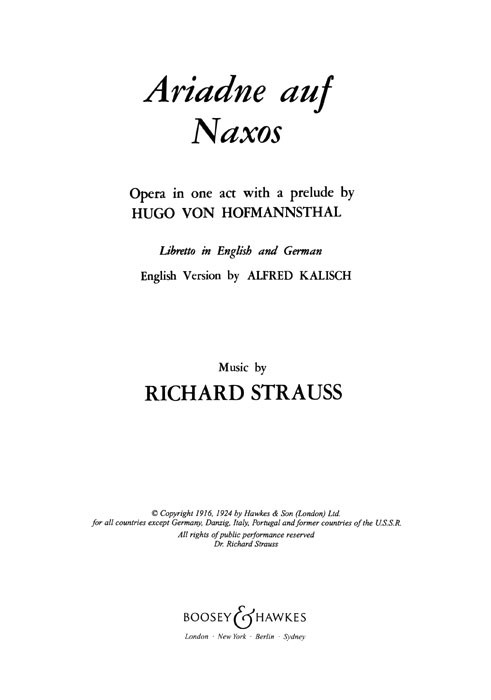 Ariadne auf Naxos Op. 60 (Libretto English, German)