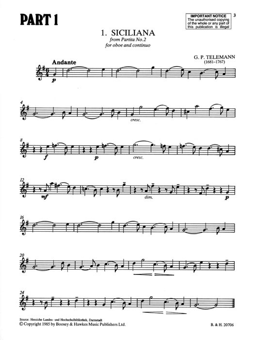 The 21 pieces included in this book are early explorations into the fascinating oboe repertoire of four centuries. The pieces in parts 1 & 2 are standard repertoire pieces, with the pieces in part 1 being slightly easier than those in part 2. Part 3 contains additional pieces selected from the repertoire for the instrument which are comparable with the standard of difficulty of the pieces in parts 1 & 2.