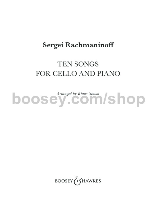 These ten arrangements are a welcome addition to Rachmaninoff’s small but significant output of original works for cello and piano. Klaus Simon comments that Rachmaninoff’s songs are some of the most beautiful in the whole repertoire and especially suitable for cello. The instrument's sound is so flexible and beautiful for melody, and with its warm sound and potential for intense vibrato and tasteful portamenti it is ideally suited to the task. The order of this edition is a suggestion by the arranger which has worked very well in concerts; performers should feel free to choose their own combination.