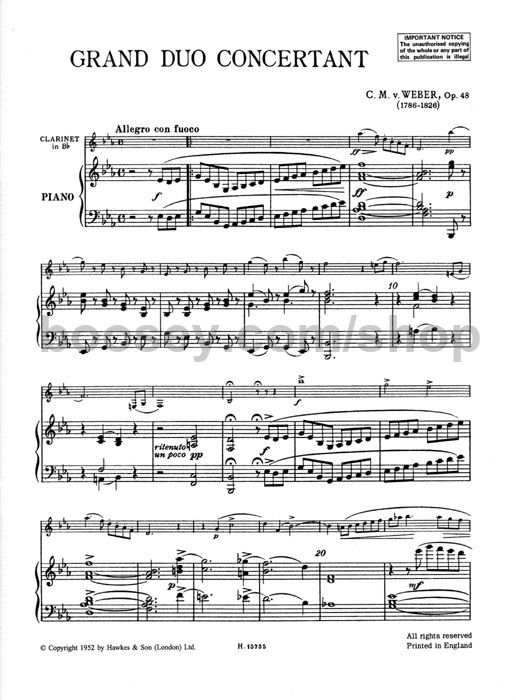 Weber, Carl Maria von (Roth) - Grand Duo Concertante Op. 48 (Clarinet & Piano)
